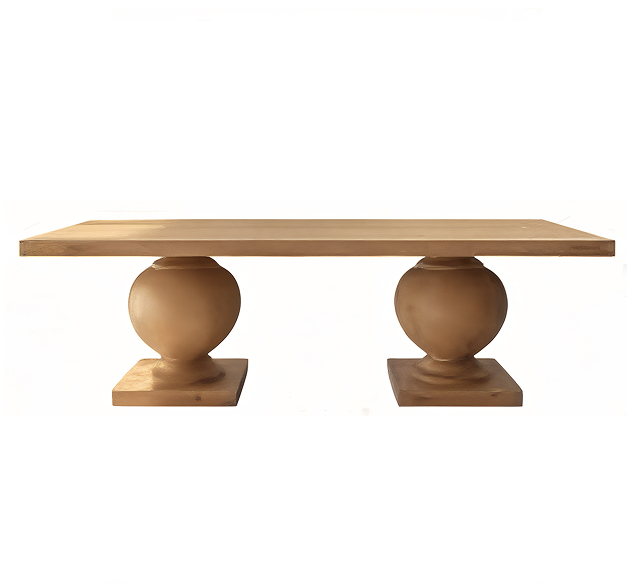Această masă se remarcă prin bazele sale sferice impunătoare, care îi conferă un aspect aparte. Blatul din lemn finisat completează designul elegant, fiind potrivită pentru ceremonii și evenimente unde decorul joacă un rol important.