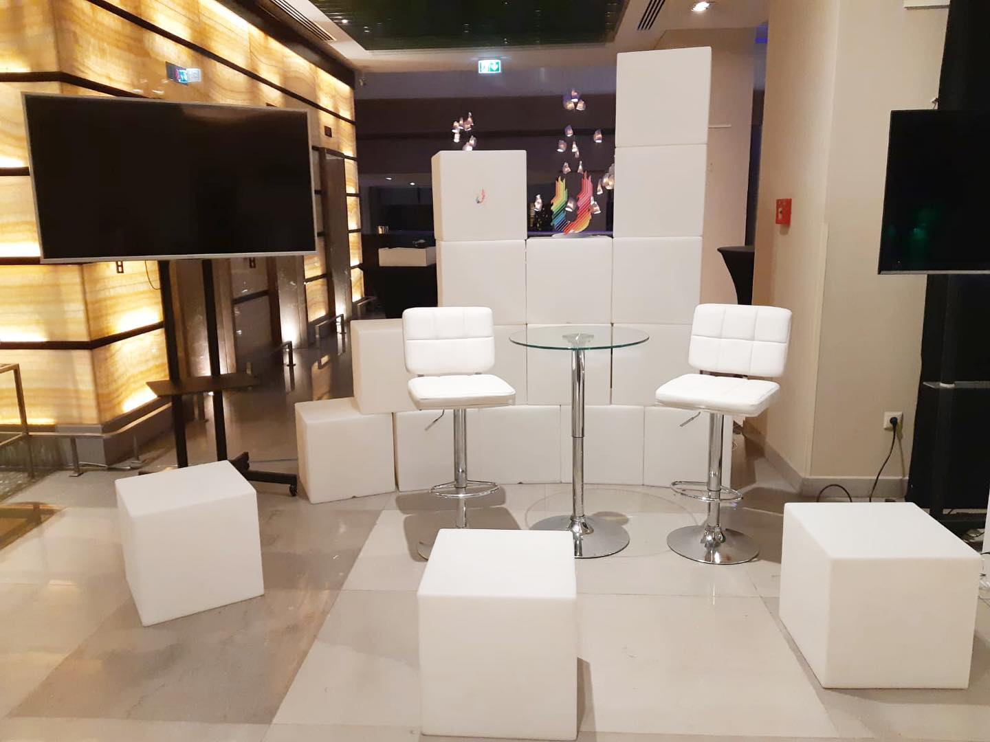 Mesele cocktail cu blat din sticlă și picior central din inox, cu înălțime reglabilă, sunt o opțiune modernă pentru evenimente. Se potrivesc atât în spații de socializare, cât și ca mese de cafea, oferind un echilibru între funcționalitate și design contemporan.