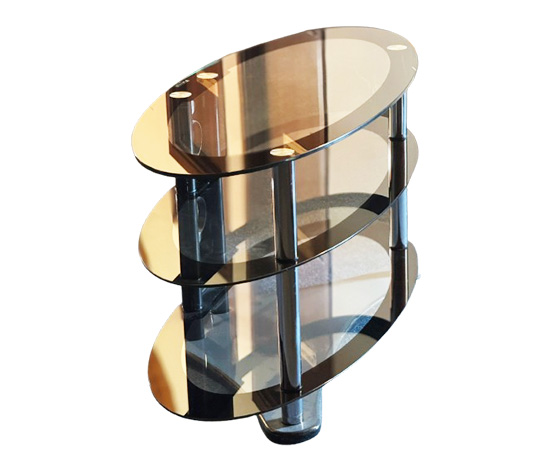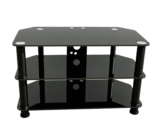 Stand cu rafturi negre, conceput pentru expoziții și evenimente corporate. Asigură un suport solid pentru plasme și echipamente audio-video, fiind ideal pentru prezentări și afișaje profesionale.